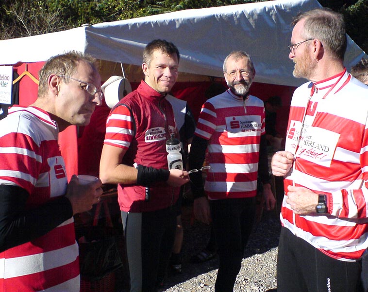 Vagn, Ulrik, Sverre og Poul Erik Det righoldige kagebord - en vigtig del af traditionen Leif på vej i mål Ruten diskuteres Henrik A. på de sidste meter - og i mål efter 52 km